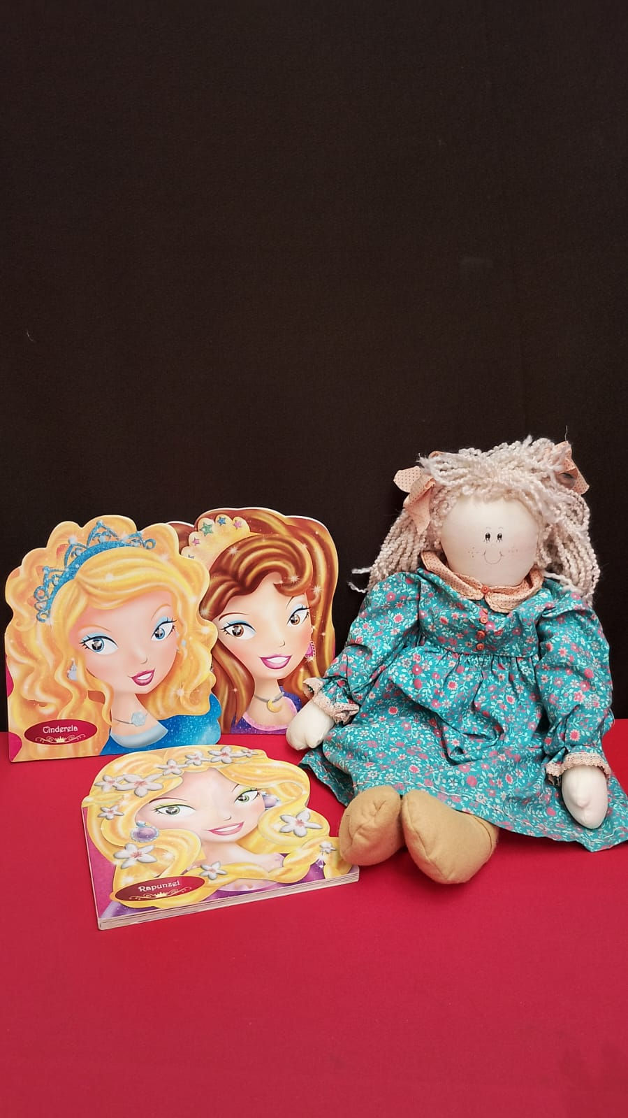 Boneca de pano, muito fofa e livros histórias infantis Cinderela, Rapunzel ...